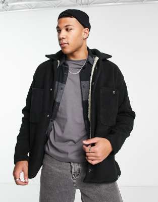 Only & Sons - Overshirt van fleece gevoerd met teddy in zwart