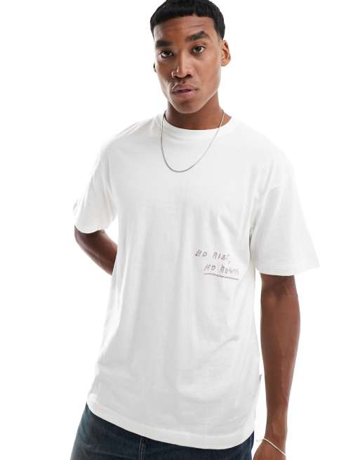 Only & Sons - Ruimvallend T-shirt met 'No risk'-print in wit