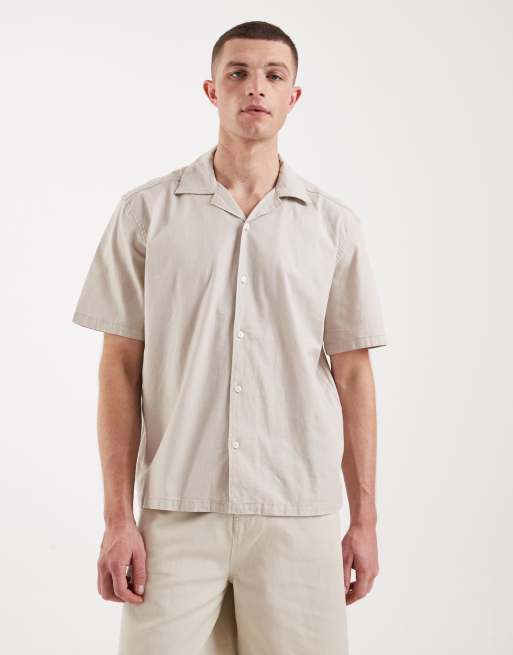 ONLY & SONS - Set van 2 katoenrijke overhemden met reverskraag in zwart en beige