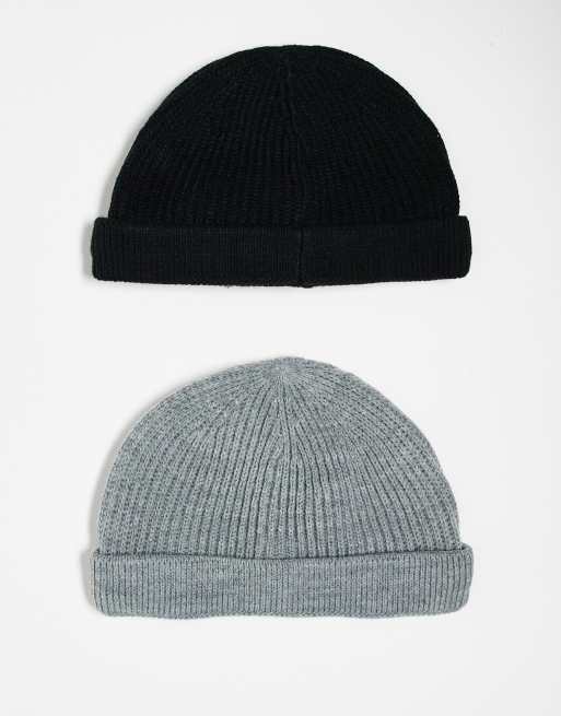 Only & Sons - Set van 2 vissersbeanies in zwart en gemêleerd grijs