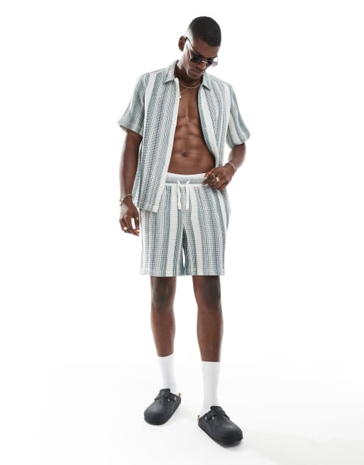 Only & Sons - Shorts met wafeltextuur in wit en groen, deel van co-ord set