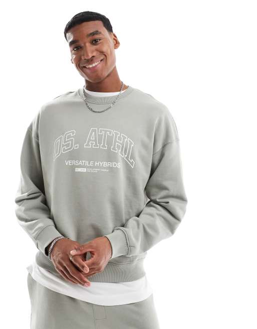 Only & Sons - Sweater met ronde hals en 'Athletic' print in saliegroen, deel van co-ord set