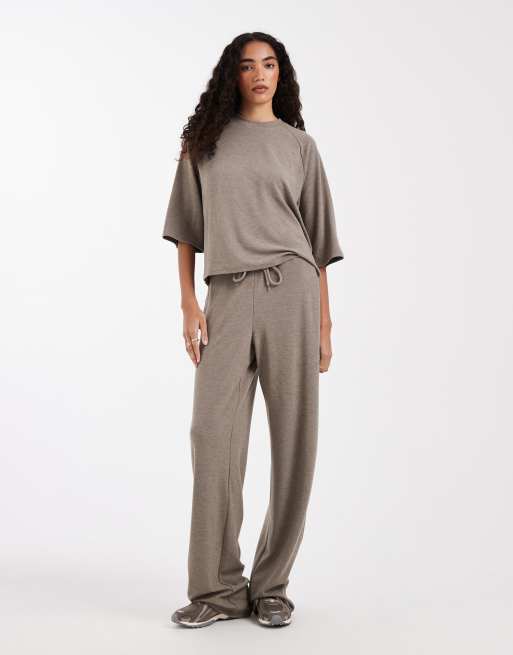 ONLY Tall - Broek met wijde pijpen en zachte textuur in lichtbruin, deel van co-ord set