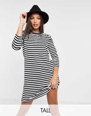 Only Tall - Mini T-shirtjurk met pofmouwen en zwarte strepen