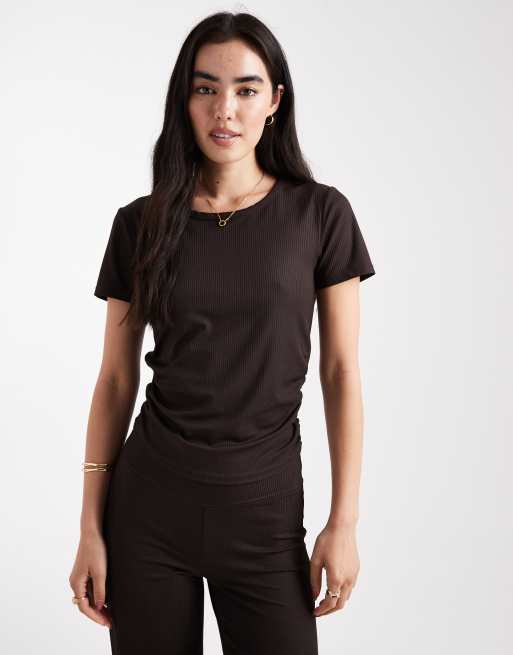 ONLY - Active - Geribbelde top met korte mouwen in chocoladebruin, deel van co-ord set