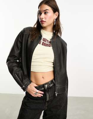 Only - Bomberjack van imitatieleer in zwart met wassing