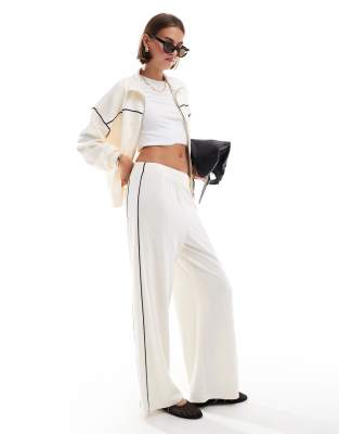 Only - Broek met elastische taille, wijde pijpen en contrasterende biezen in crème, deel van co-ord set