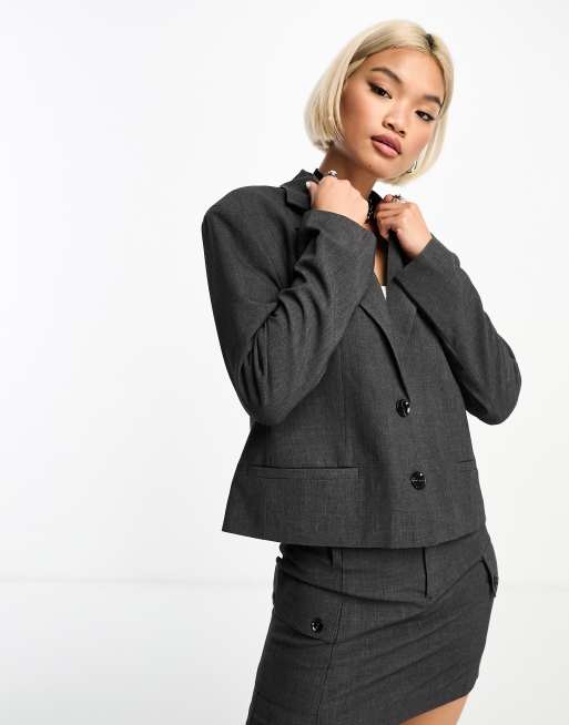 Only - Cropped boxy blazer in antraciet, deel van co-ord set