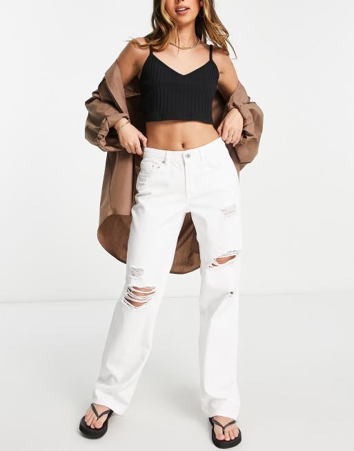 Only - Distressed ruimvallende jeans met halfhoge taille in wit