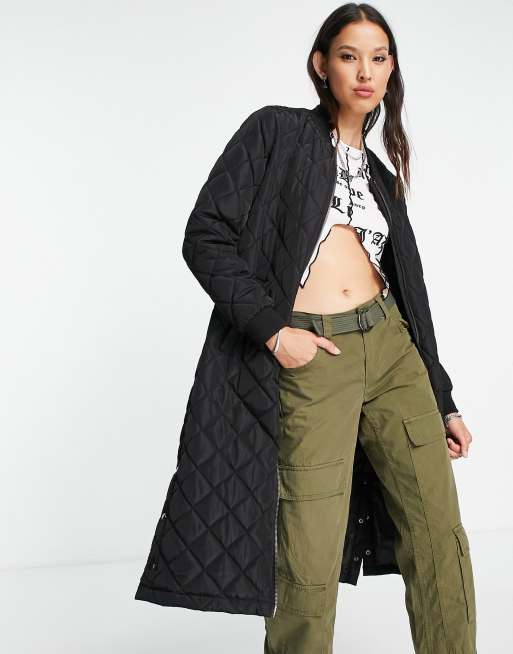 Only - Doorgestikte jas met lange pasvorm in zwart