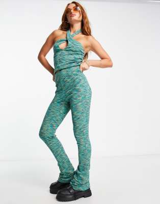 Only - Flare-broek in space-dye groen, deel van co-ord set