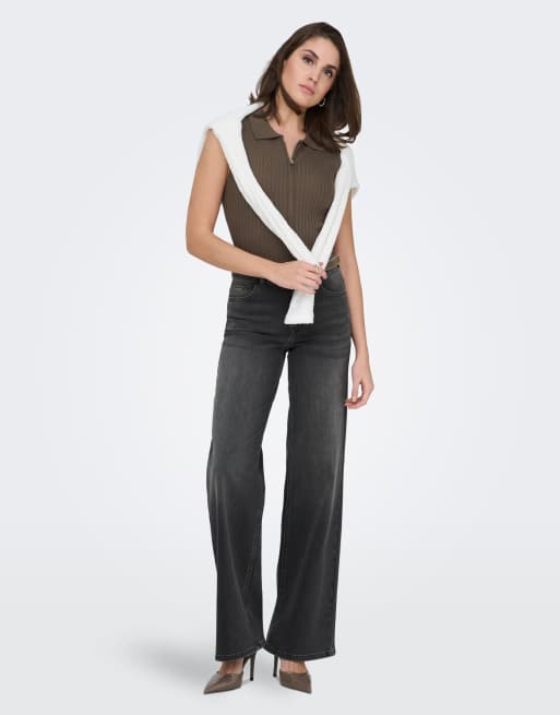 ONLY - Jeans met wijde pasvorm in zwart met wassing