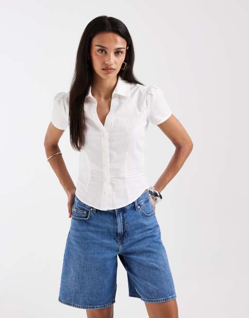 ONLY - Losvallende mom short met halfhoge taille in middenblauw denim