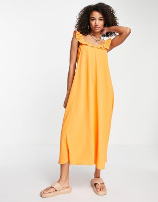 Only - Maxi jurk met bandjes met ruches in feloranje