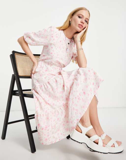Only - Midi-jurk met strikje op de rug in wit met roze bloemenprint