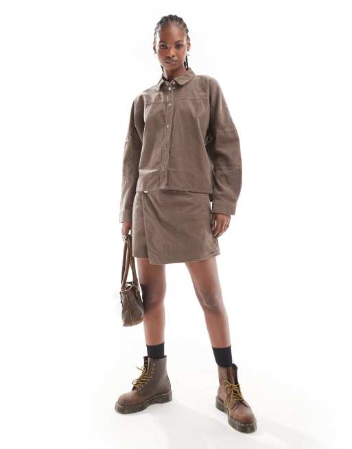 ONLY - Overhemd van corduroy in bruin met wassing, deel van co-ord set