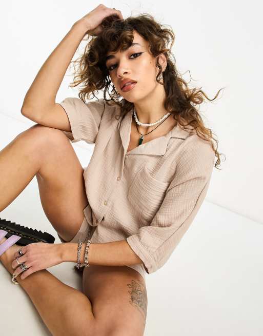 Only - Overhemd van kaasdoek met knoopsluiting in beige, deel van co-ord set