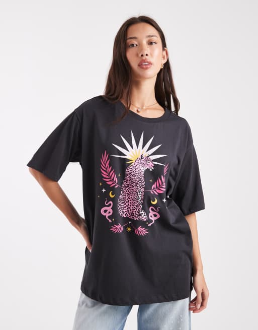 ONLY - Oversized T-shirt met grafische luipaardprint in antracietgrijs