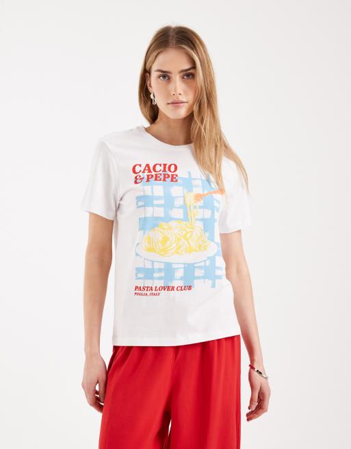 ONLY - Regular-fit T-shirt met pastaprint in wit