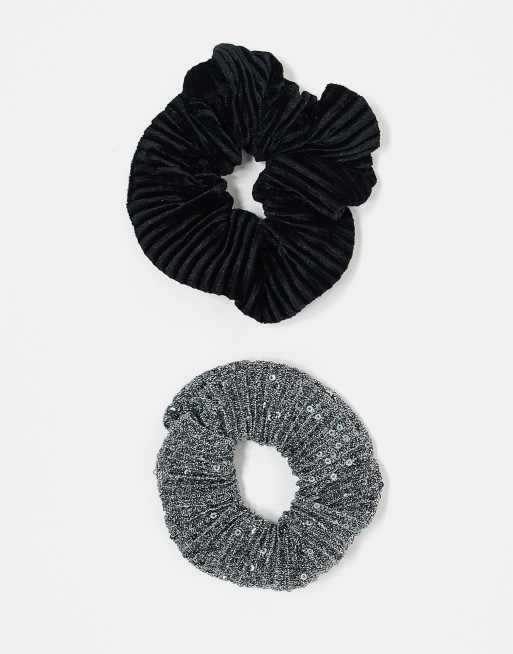 ONLY - Set van 2 scrunchies in zwart en zilver glitter