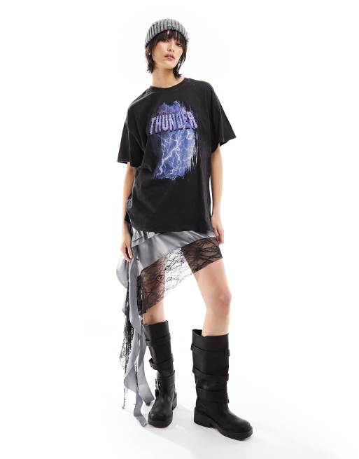 Only - T-shirt met Thunder-print van strass-steentjes in zwarte wassing
