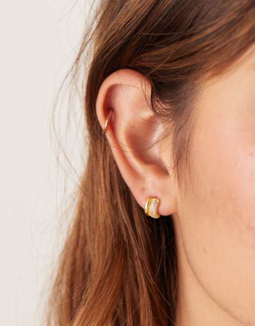 Orelia - 18k vergulde mini pavé huggie oorbellen