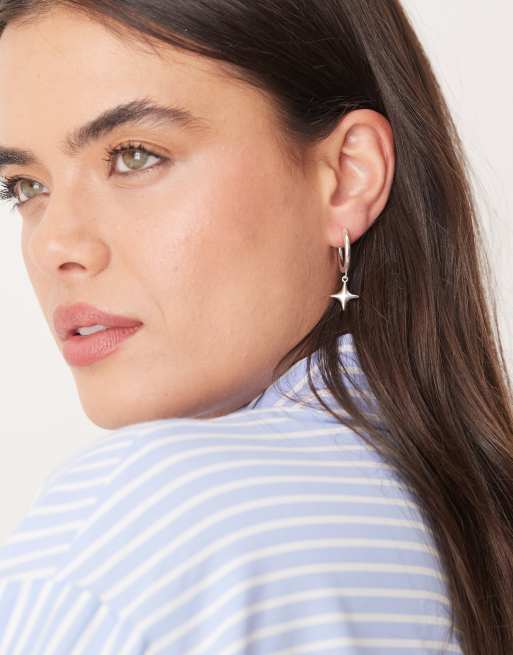 Orelia - Oorbellen met ring en sterren in sterling zilver verguld