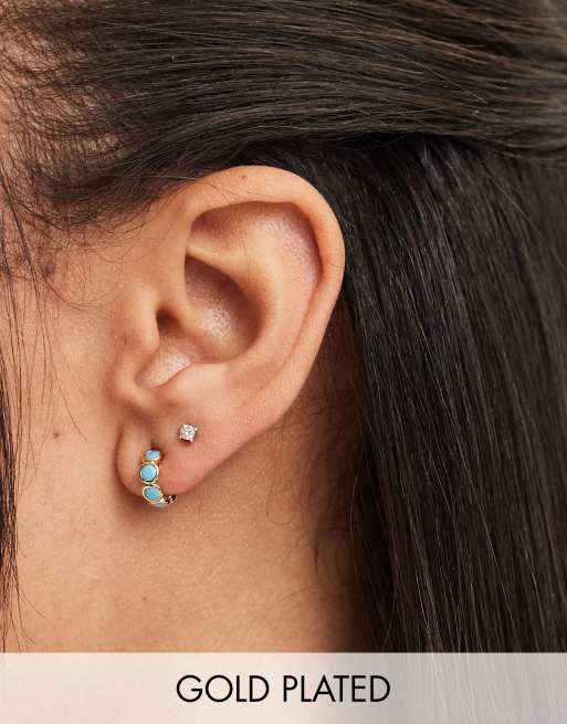 Orelia - Vergulde huggie oorringen met ingelegde turquoise steentjes