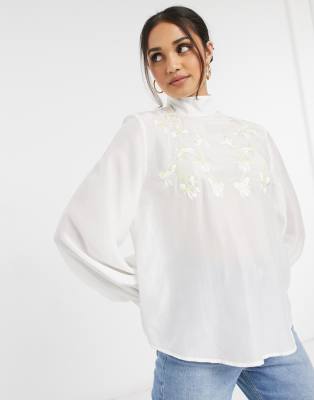 & Other Stories - Blouse met geborduurde bloemen in crème