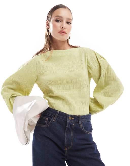 & Other Stories - Blouse met textuur in licht kaki