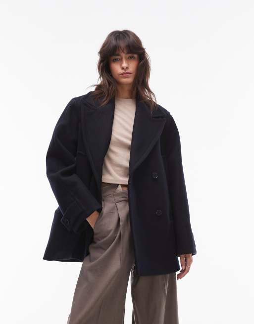 & Other Stories - Double breasted cropped jas van wolmix en dubbele zakken in donkerblauw