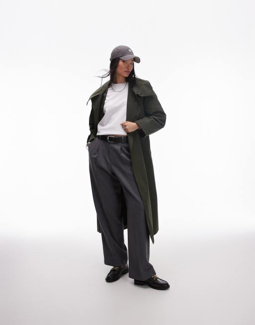 & Other Stories - Double breasted trenchcoat met riem en opstaande boord in donkergroen