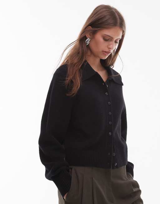 & Other Stories - Gebreid vest met kraag en knoopsluiting in zwart