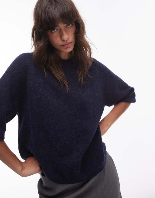 & Other Stories - Gebreide trui van alpacawol met korte mouwen in marineblauw, exclusief bij ASOS