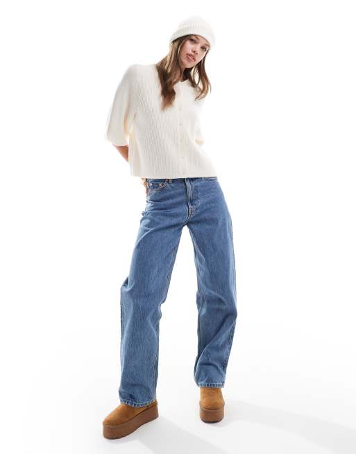 & Other Stories - Geribbeld vest van wol met korte mouwen in gebroken wit