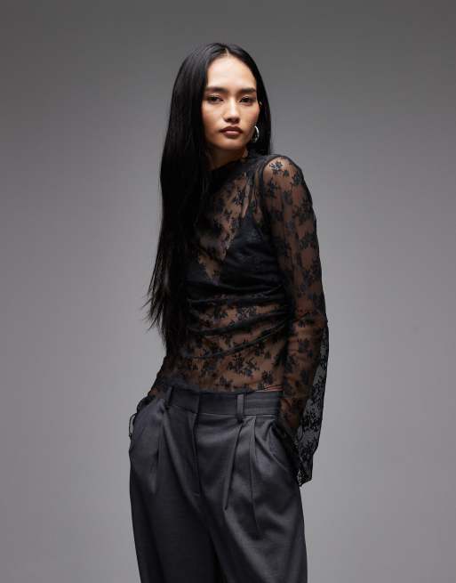 & Other Stories - Gerimpelde doorzichtige top met lange mouwen in zwart