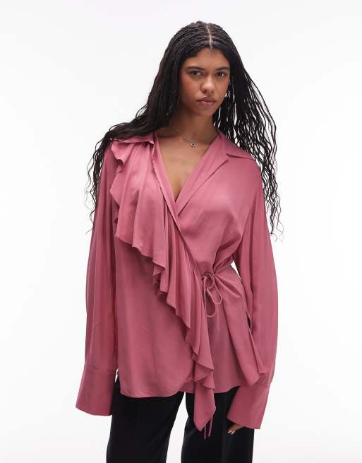 & Other Stories - Half doorschijnende blouse with asymmetrische ruches in granaatappelroze