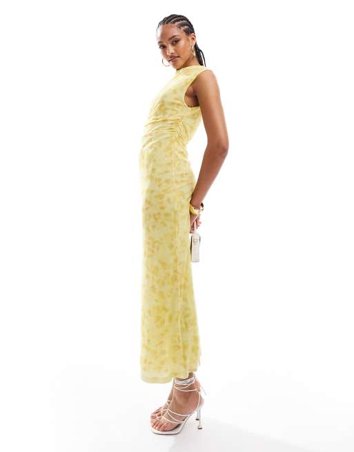 & Other Stories - Midi jurk van mesh met gedrapeerd detail en bloemenprint in geel