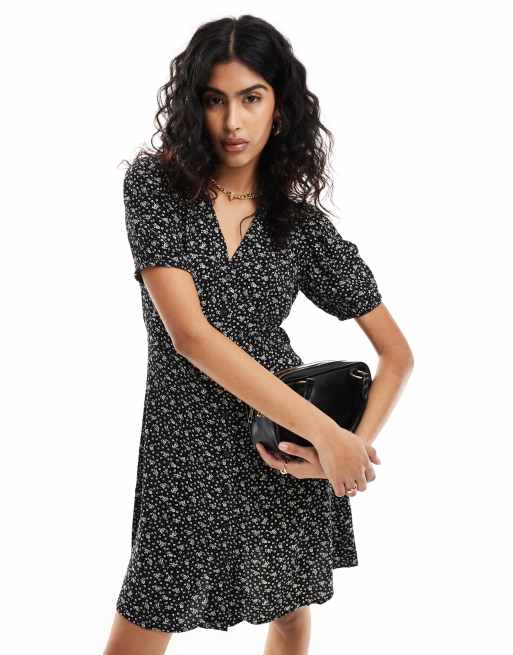 & Other Stories - Mini jurk met knopen en fijne bloemenprint in zwart