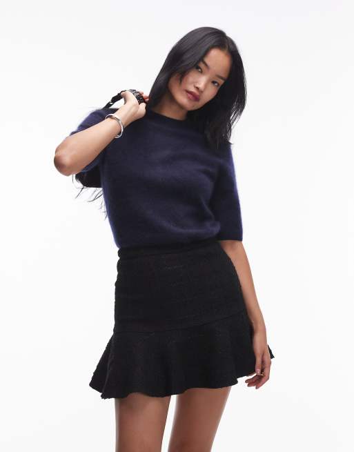& Other Stories - Mini rok met uitlopende zoom en grote ruitprint in zwart