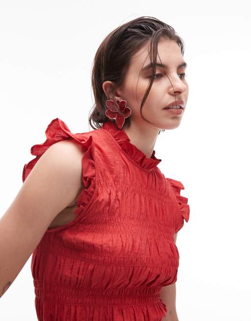 & Other Stories - Mouwloze blouse met ruches aan de kraag en peplum zoom in rood