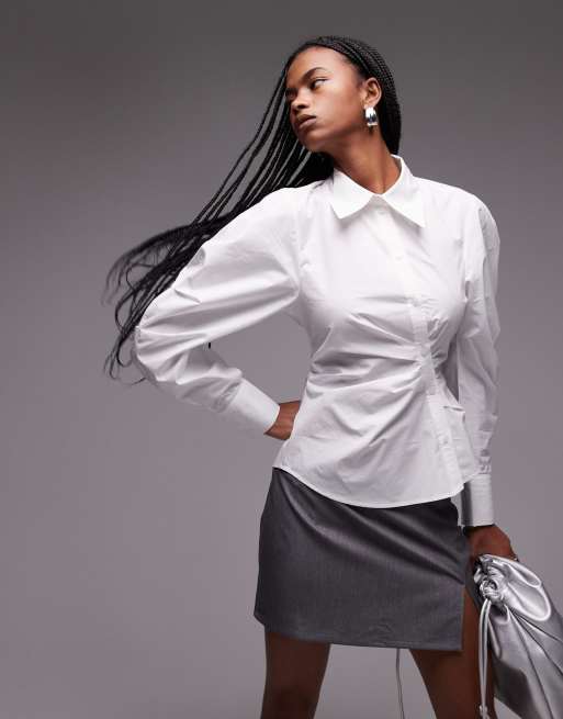 & Other Stories - Overhemd met asymmetrische knopen aan de voorkant en volumineuze mouwen in wit