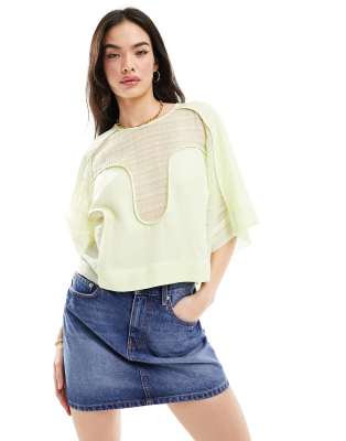 & Other Stories - Oversized geweven crop top met doorschijnend uitgesneden detail in lichtgroen