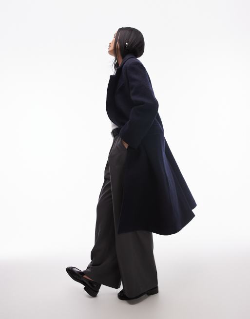& Other Stories - Oversized halflange jas van wolmix met asymmetrisch knoopdetail in marineblauw