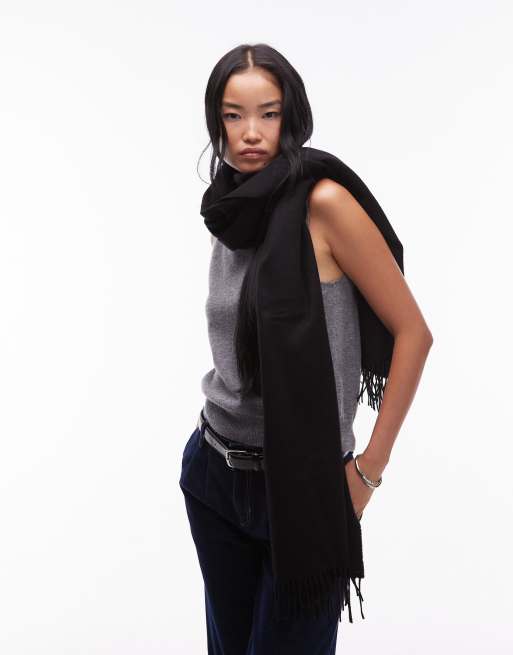 & Other Stories - Premium zuiver wollen sjaal met franjes aan de rand in zwart
