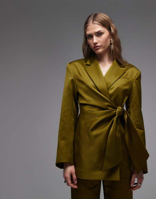 & Other Stories - Satijnen blazer met strikdetail in olijfgroen, deel van co-ord set
