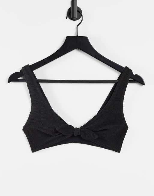 & Other Stories - Triangel bikinitop van getextureerde polyester en gestrikte voorkant in zwart - BLACK