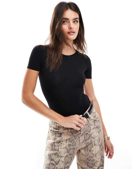 OW Collection - Rosa - Body met korte mouwen in zwart