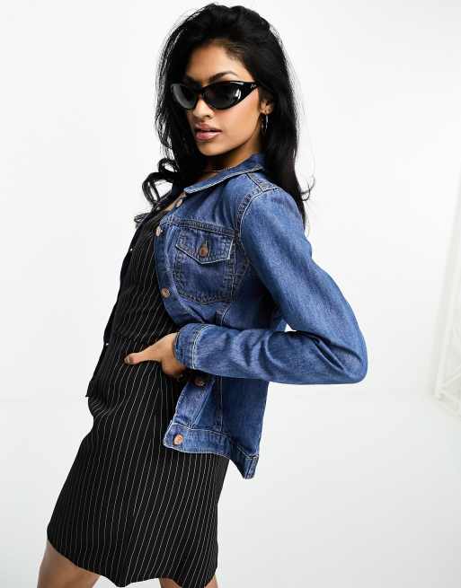 Parisian - Denim jack met geplooide voorkant in middenblauw