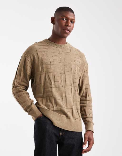 Parlez - Gebreide trui met ronde hals en monogramprint in reliëf in donkerbeige